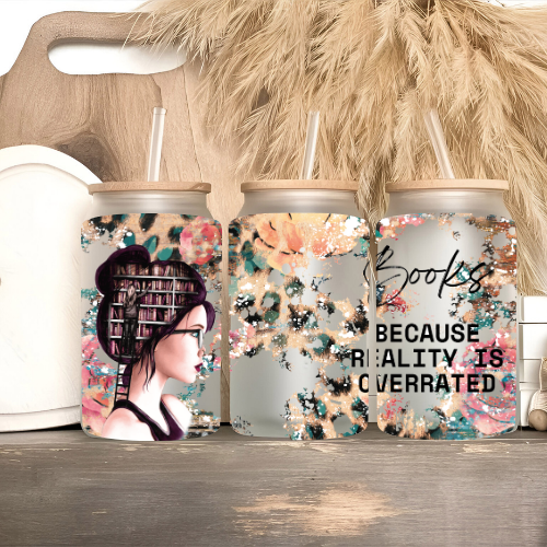 Verlies jezelf in je favoriete boeken met dit stijlvolle koffieglas, bedrukt met de humorvolle en herkenbare tekst “Books Because Reality Is Overrated.” Met een royale inhoud van 450ml biedt dit glas de perfecte hoeveelheid voor je dagelijkse koffie, thee, latte of smoothie. Het ontwerp is ideaal voor boekenliefhebbers die hun liefde voor lezen willen combineren met hun liefde voor een goed drankje.
