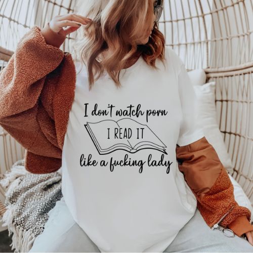 I don’t watch porn, I read it like a lady. Hèt T-shirt voor alle smut-lezers!!