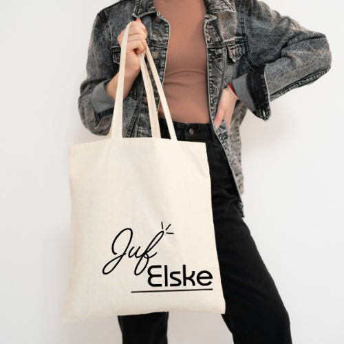 Katoenen tas met bedrukking: Juf en dan haar eigen naam. De perfecte tas voor elke juf Deze tas is het perfecte cadeau voor de juf aan het einde van het leerjaar! Wellicht is het een perfecte tas voor iemand die les geeft . De perfecte tas voor een dagje shoppen, universiteit of school!