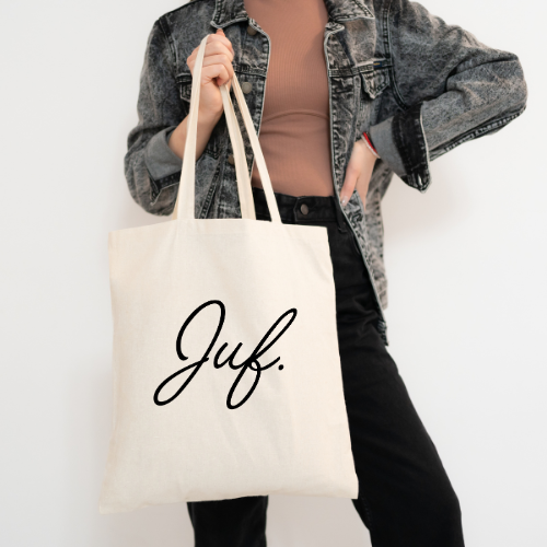 Katoenen tas met bedrukking: Juf. De perfecte tas voor elke juf Deze tas is het perfecte cadeau voor de juf aan het einde van het leerjaar! Wellicht is het een perfecte tas voor iemand die les geeft . De perfecte tas voor een dagje shoppen, universiteit of school!