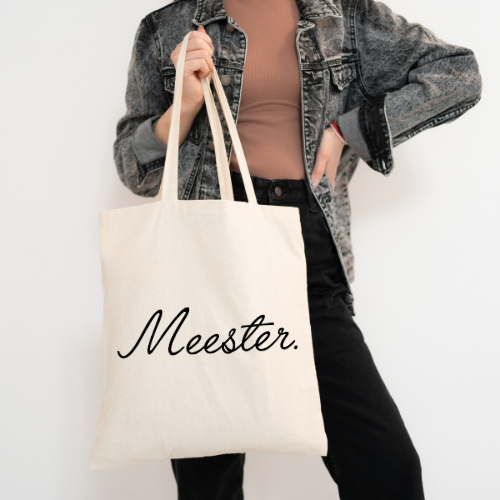 Katoenen tas met bedrukking: Meester. De perfecte tas voor elke Meester. Deze tas is het perfecte cadeau voor de meester aan het einde van het leerjaar! Wellicht is het een perfecte tas voor iemand die les geeft . De perfecte tas voor een dagje shoppen, universiteit of school!