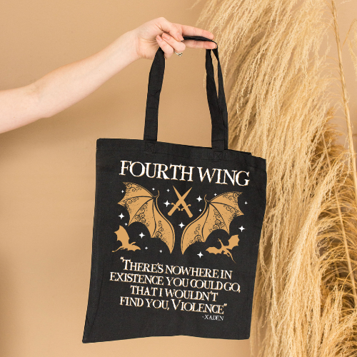 Ontdek de ‘Tote Nowhere in existence” katoenen tas met Fourth Wing opdruk, met liefde handbedrukt. De ultieme tas voor romantici en Fourth Wing fans! Het perfecte cadeau voor boekenwurmen en een geweldige traktatie voor jezelf. Ideaal voor literatuurliefhebbers, bibliotheekliefhebbers en docenten. Een must-have accessoire voor shoppen, universiteit of school!